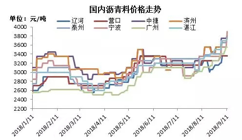 國際原油推漲和國內(nèi)成品油不斷上行,帶動瀝青/渣油價格上揚(yáng)。船燃主要調(diào)和原料采購成本上行明顯,瀝青料產(chǎn)品的年內(nèi)漲幅約50%,而煤柴、水上油、頁巖油,也分別有39%、31%、22%的上行表現(xiàn)。