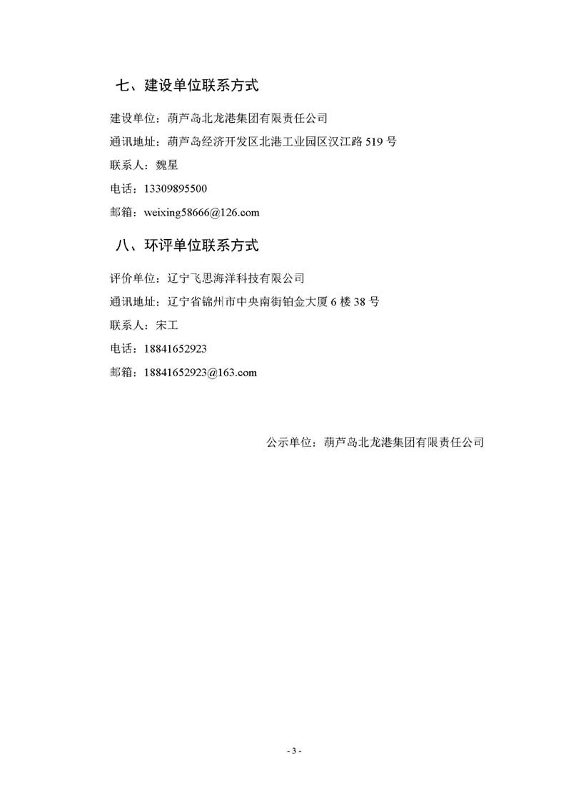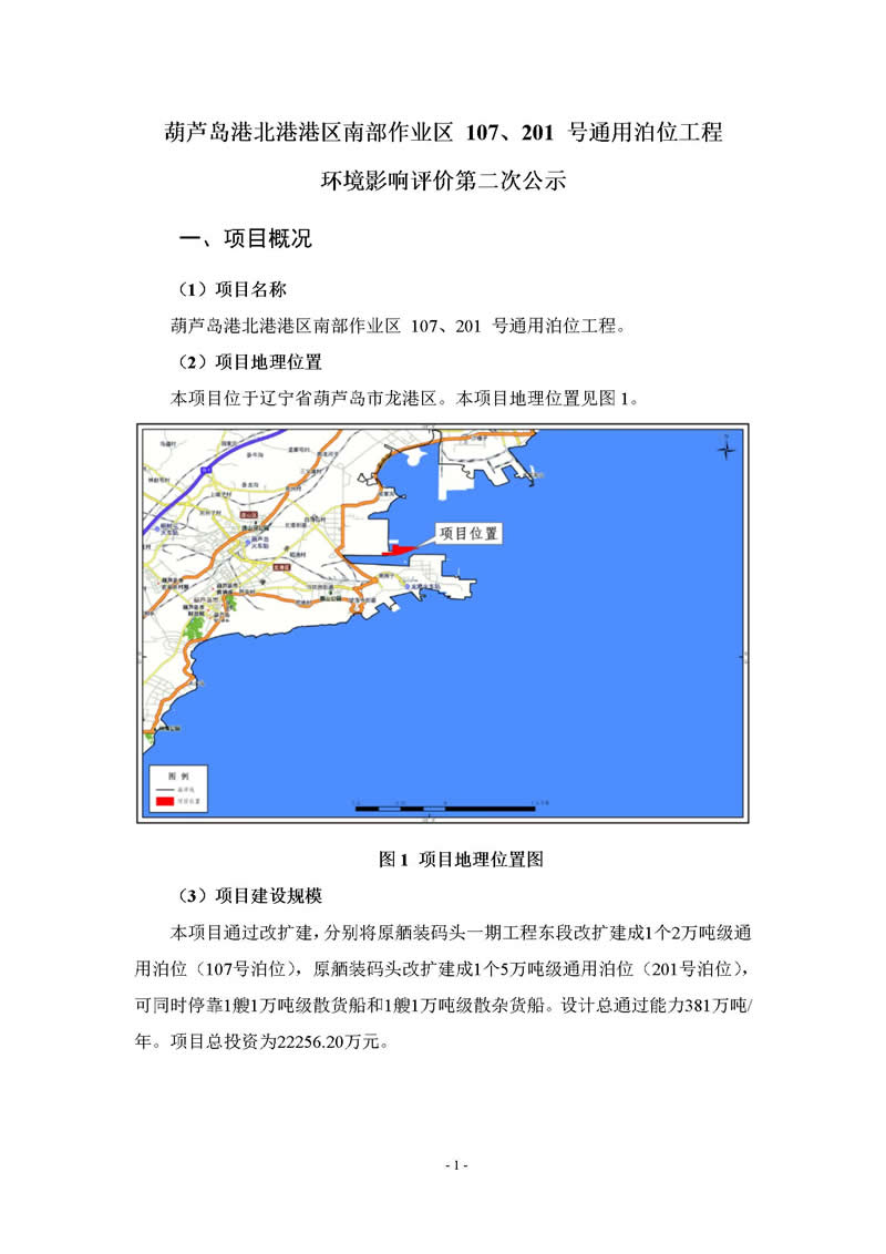 葫蘆島港北港港區(qū)南部作業(yè)區(qū) 107、201 號(hào)通用泊位工程 環(huán)境影響評(píng)價(jià)第二次公示